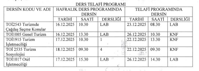 Öğr. Gör. Dr. Selma TATAR'a ait Ders Telafi Programı Son Güncelleme : 18.12.2025 13:56 Okunma Sayısı : 172