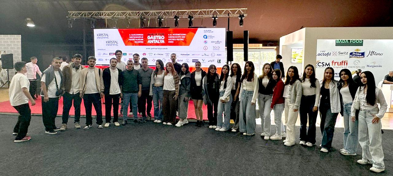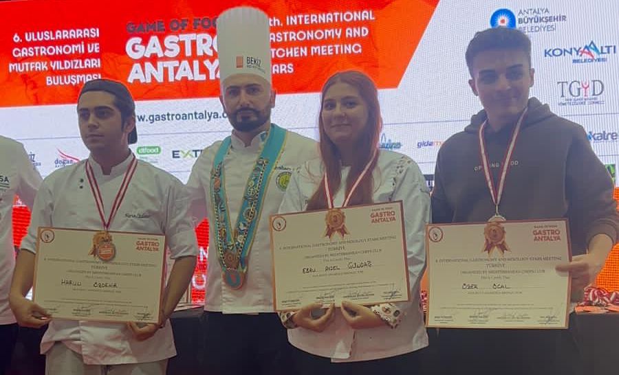 Aşçılık Öğrencilerimiz GastroAntalya 2025’ten Dereceyle Döndü Yüksekokulumuz Aşçılık Programı öğrencileri, 21–23 Kasım tarihleri arasında düzenlenen GastroAntalya 2025’te önemli bir başarı elde etti. Aşçılık öğrencilerimiz, sergiledikleri başarılı performansla dereceye girerek Üniversitemizi uluslararası platformda gururla temsil etti. Türkiye’nin saygın gastronomi organizasyonlarından biri olan GastroAntalya, birçok üniversite ve profesyonel ekibi bir araya getirdi. Öğrencilerimiz, yoğun rekabet ortamında teknik bilgi ve becerilerini jüri karşısında başarıyla ortaya koyarak yarışmadan dereceyle döndü. Son Güncelleme : 02.12.2025 09:57 Okunma Sayısı : 45